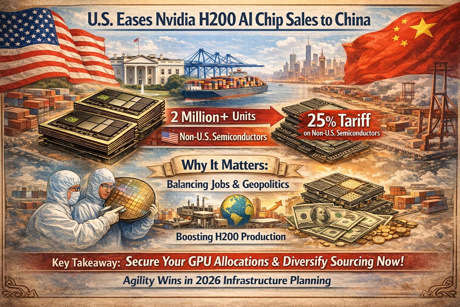 **Meta Description:** Trump approves Nvidia H200 sales to China with 25% tariff. Operators must secure GPU allocations now, diversify suppliers, and hedge against policy reversals to maintain infrastructure resilience in 2026.